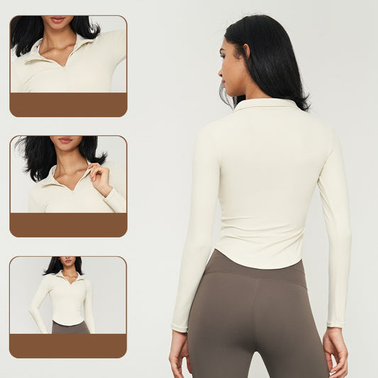 SBCX1574-Half-zip sports long-sleeved and elegant stand-collar fitness T-shirt