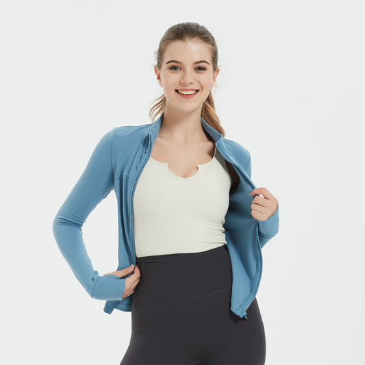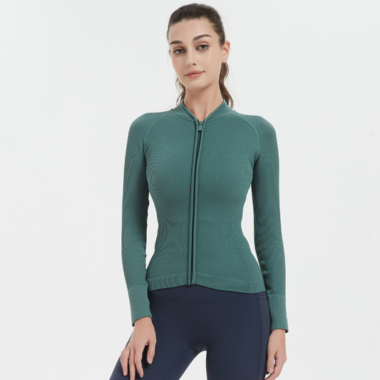SB1622-Ribbed Knit Yoga Jacket Anti-Slip Zip Slim Fit Yoga Top