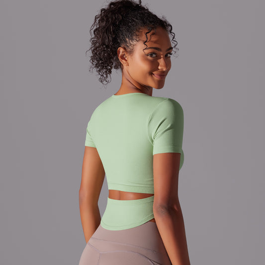 SB1589-sleeved round neck slim fit hollow fitness yoga clothing six-quarter sleeves
