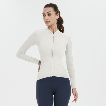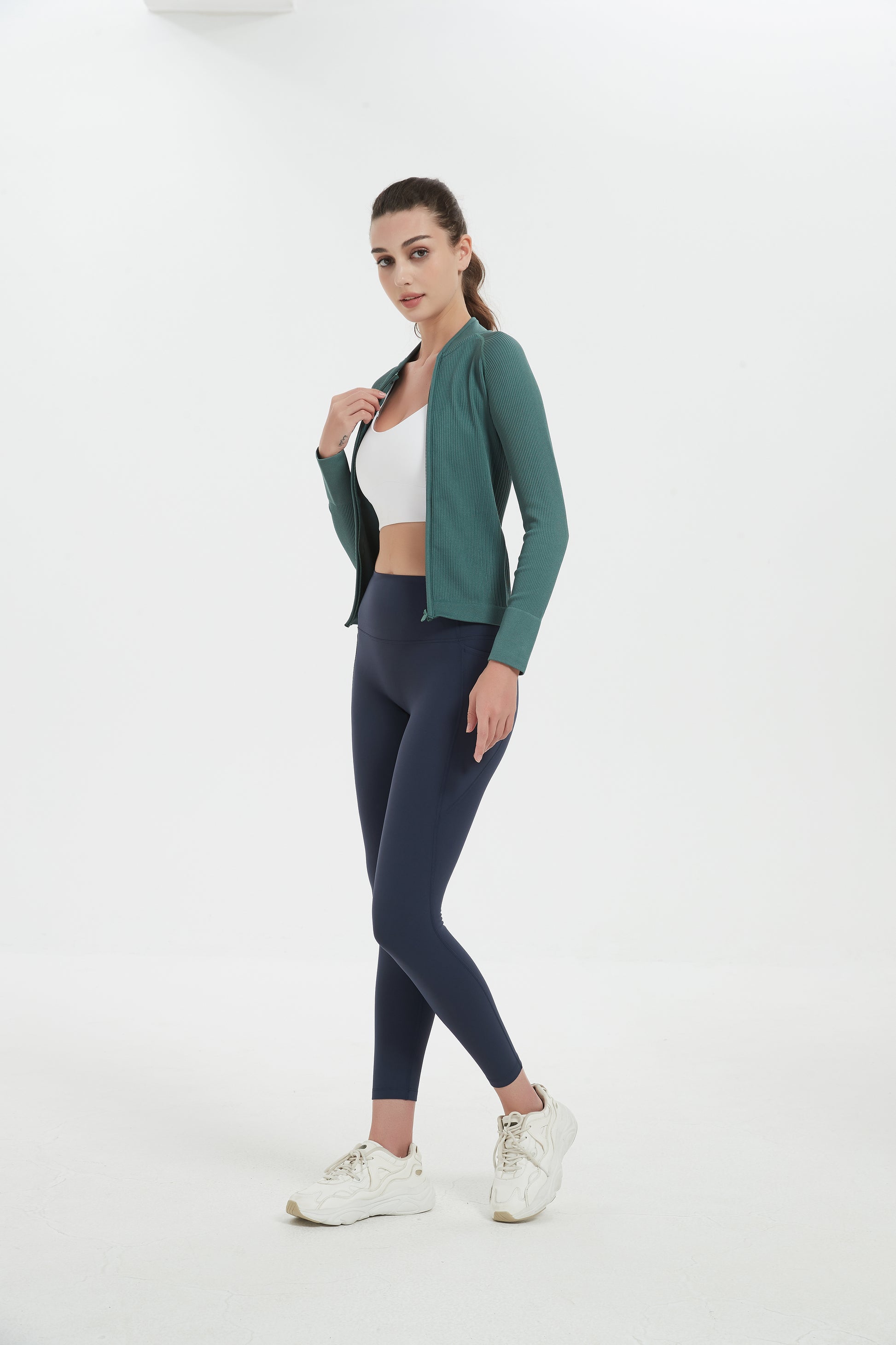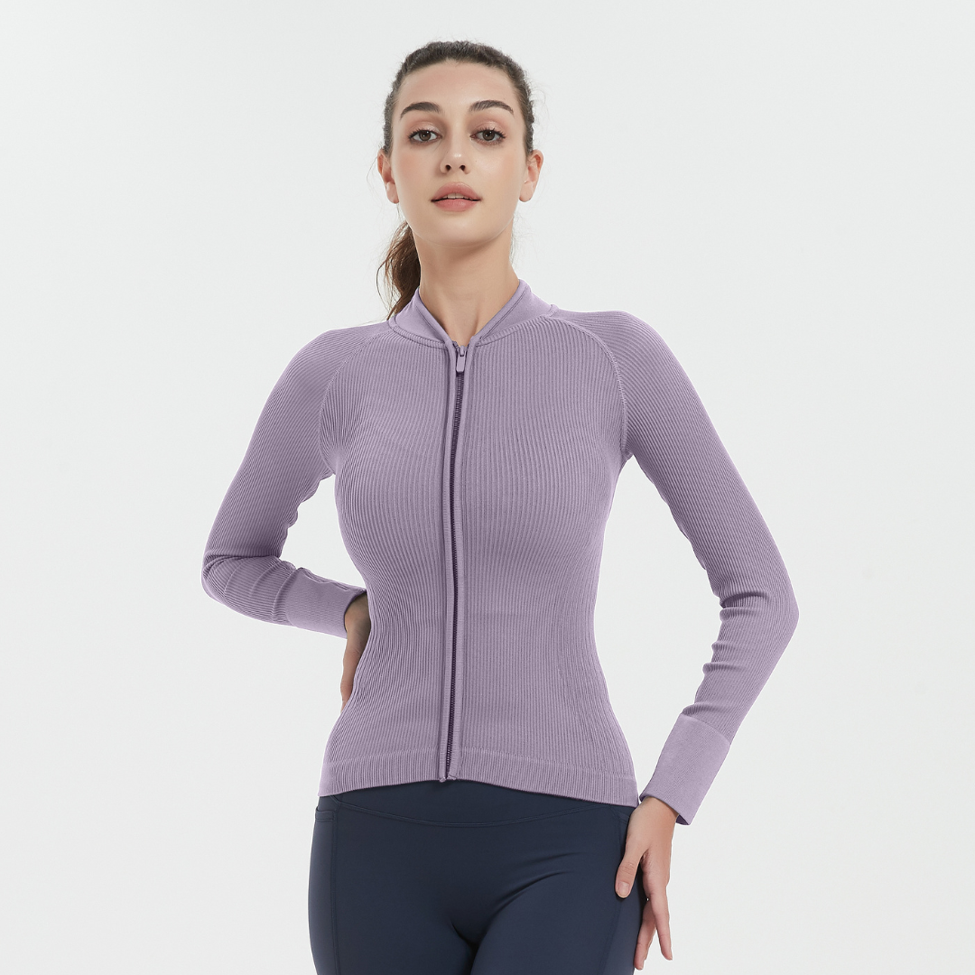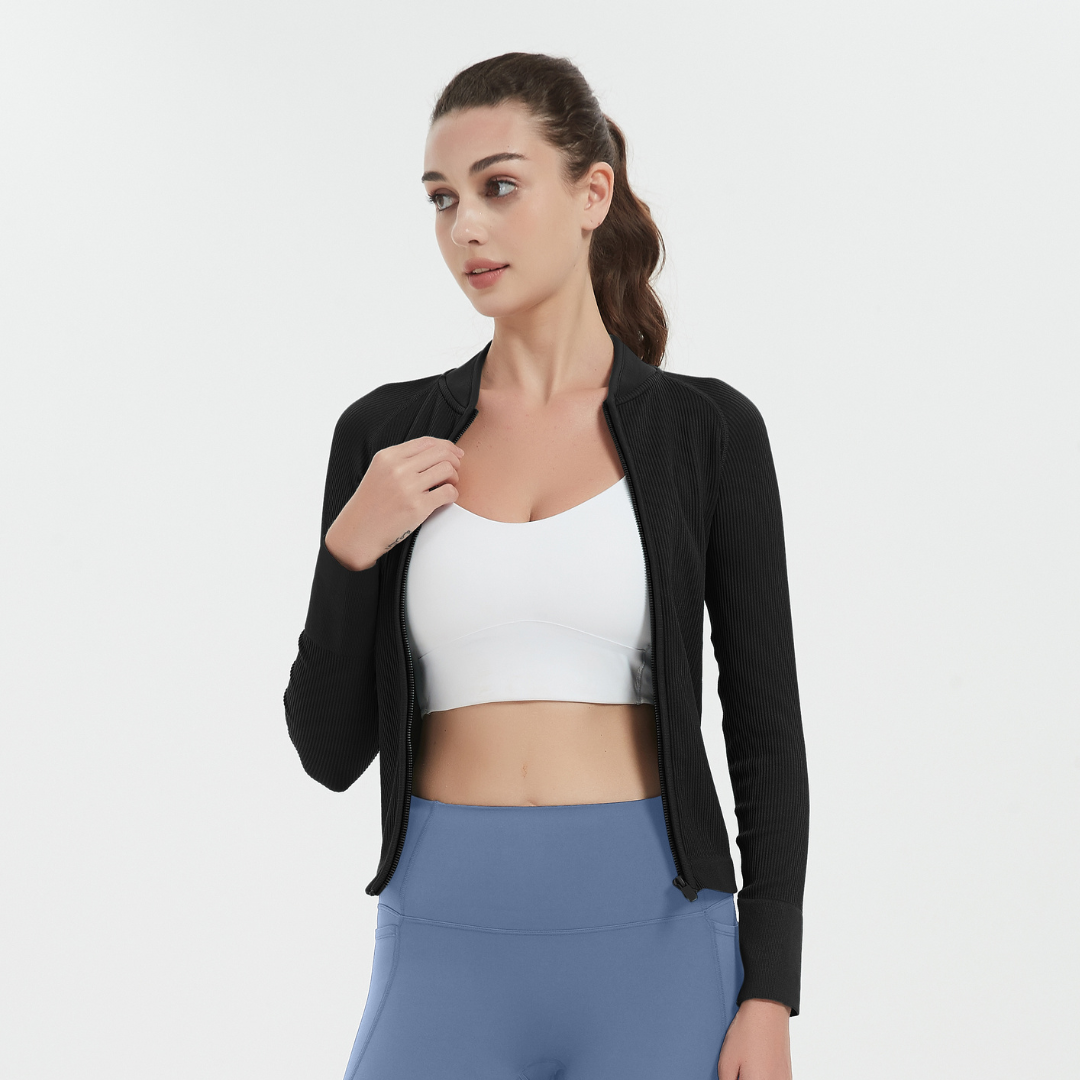 SB1622-Ribbed Knit Yoga Jacket Anti-Slip Zip Slim Fit Yoga Top