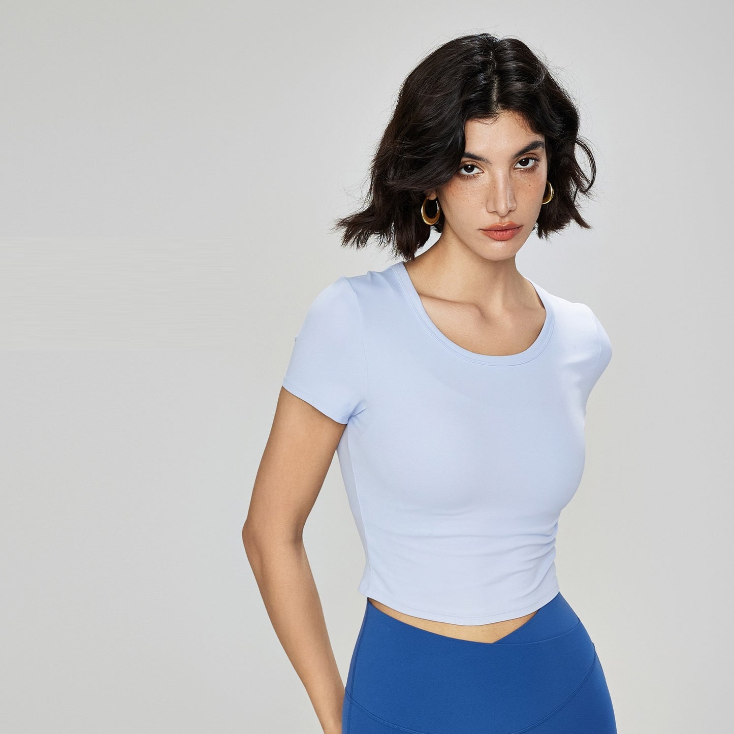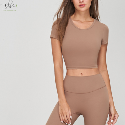 SBHP1568-Nude Slim Versatile Short Sleeve Women's Summer Sports T-Shirt Classic Yoga Top