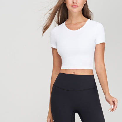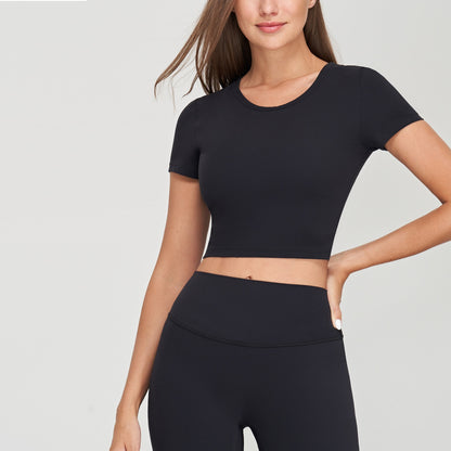 Nude Slim Versatile Short Sleeve Women's Summer Short Round Neck High