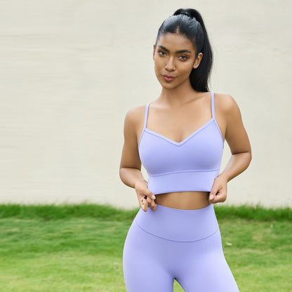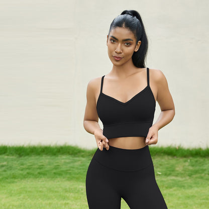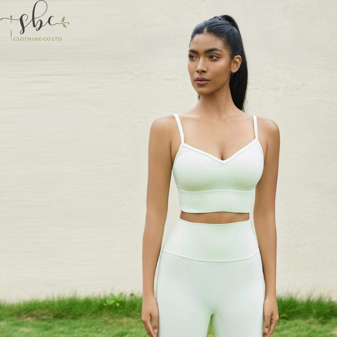 Summer outdoor fitness vest with chest pads, sexy v-neck yoga top, spaghetti