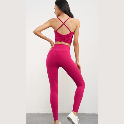 SBWX1619- Spring and summer yoga back vest female sexy cross pleat sports bra