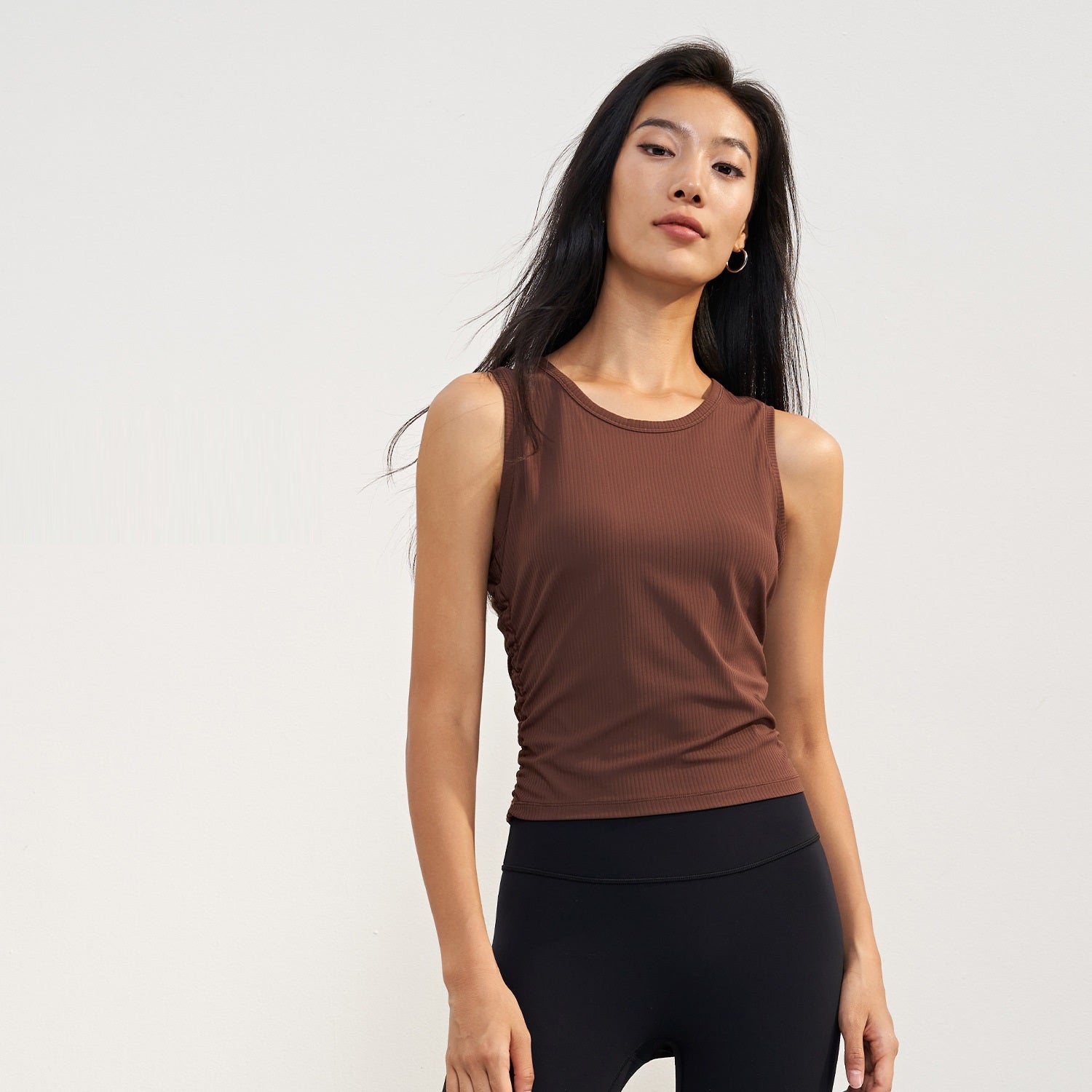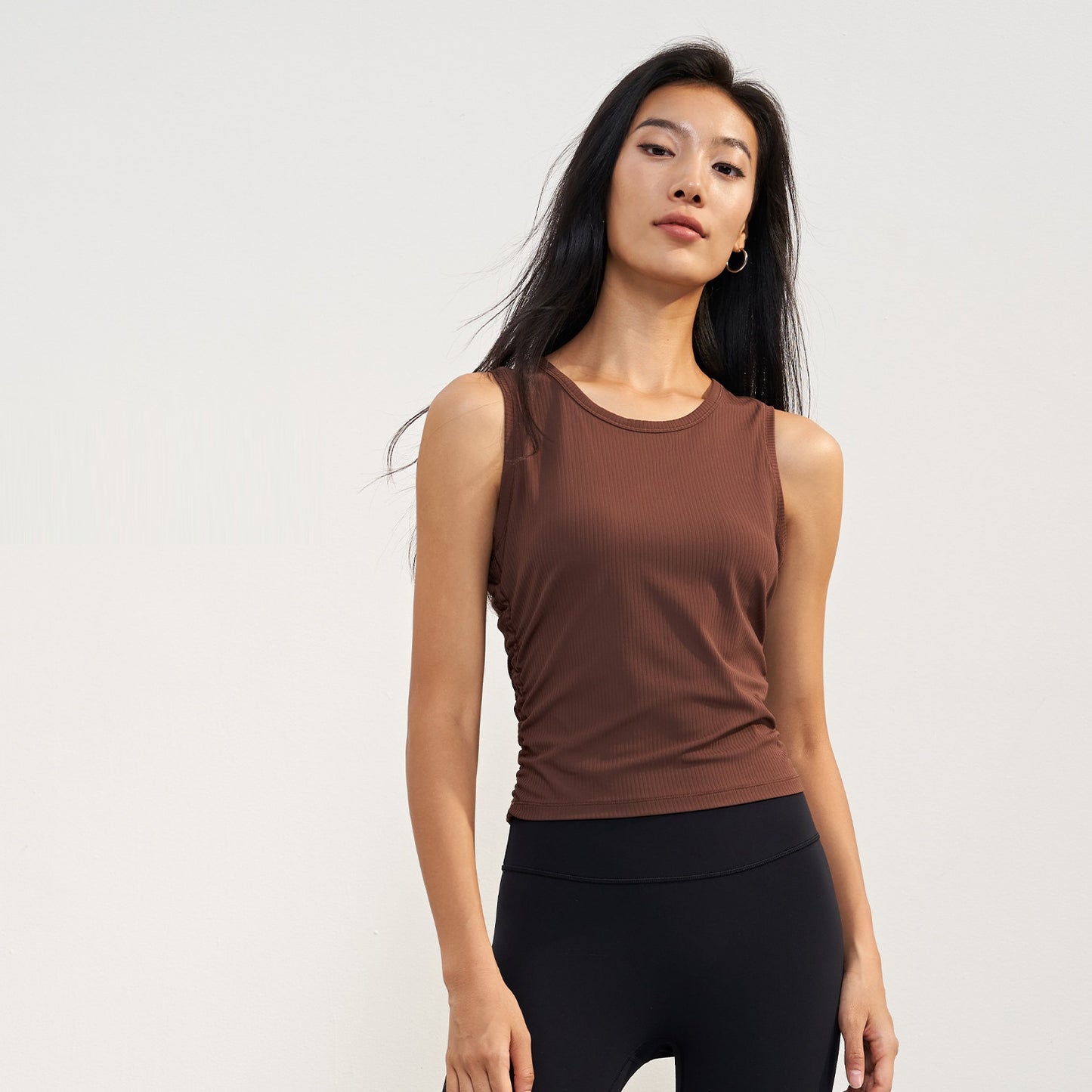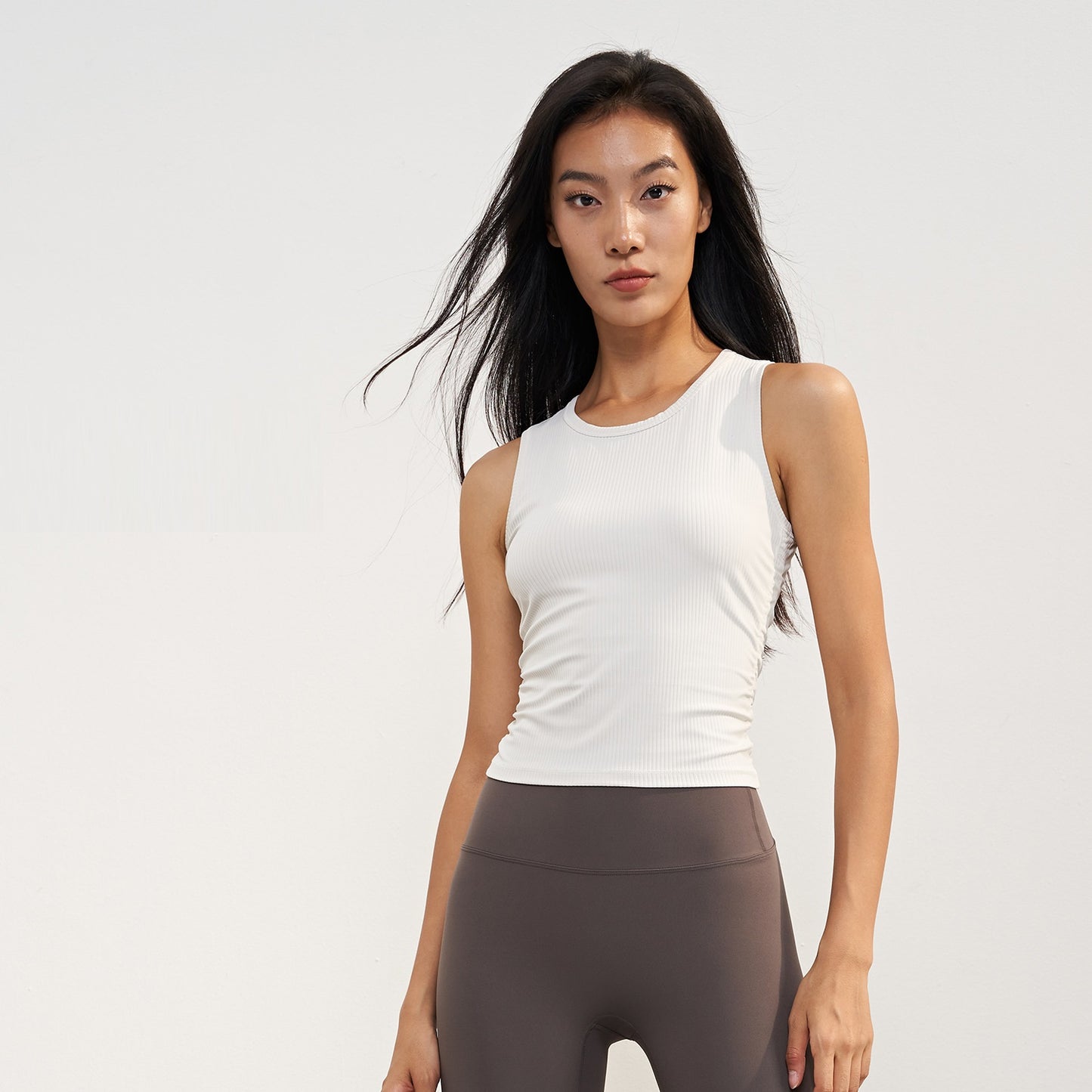 Ribbed high-end yoga vest pleated slim fit sports top outdoor running sleeveless fitness wear