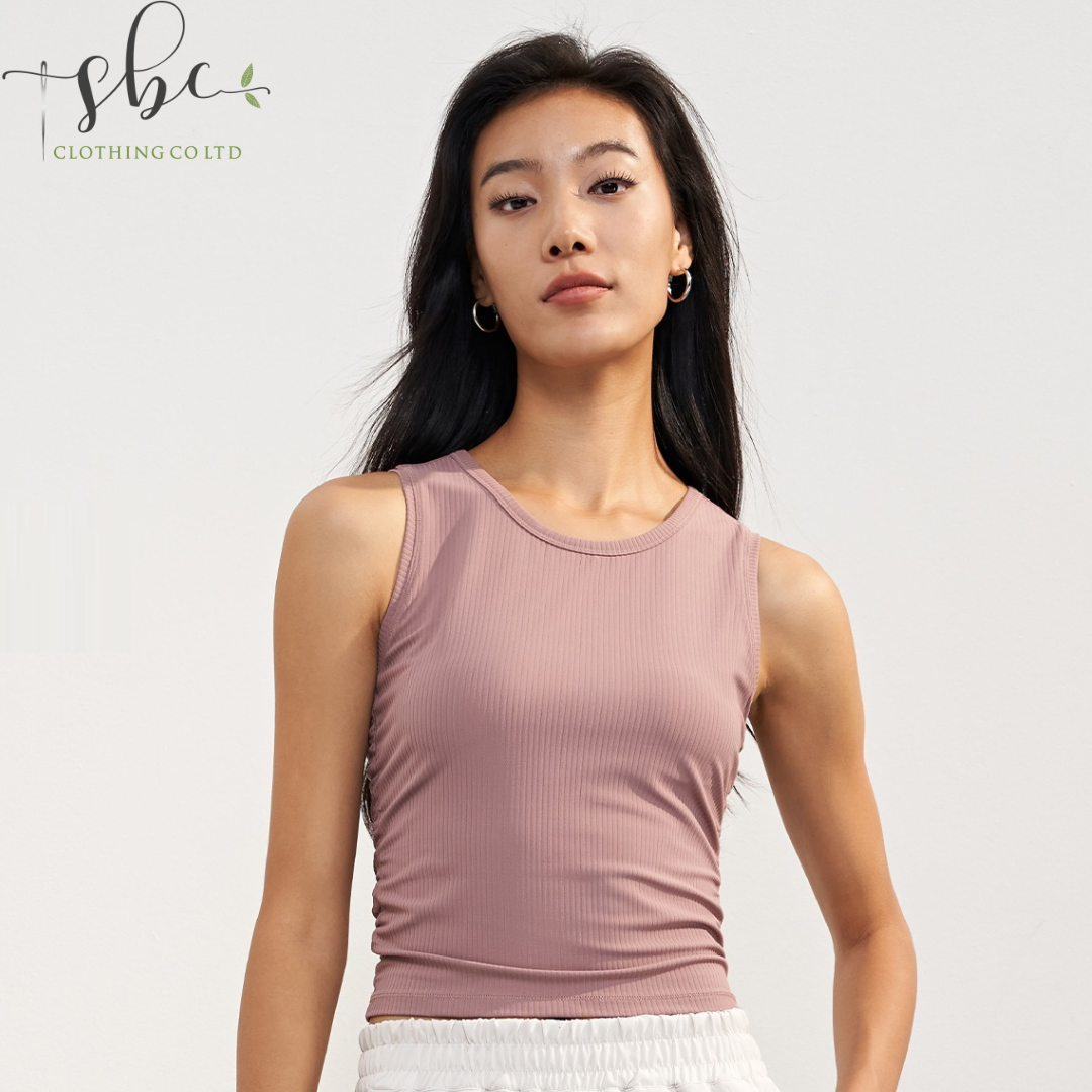 SBBX1584-Ribbed high-end yoga vest pleated slim fit sports top