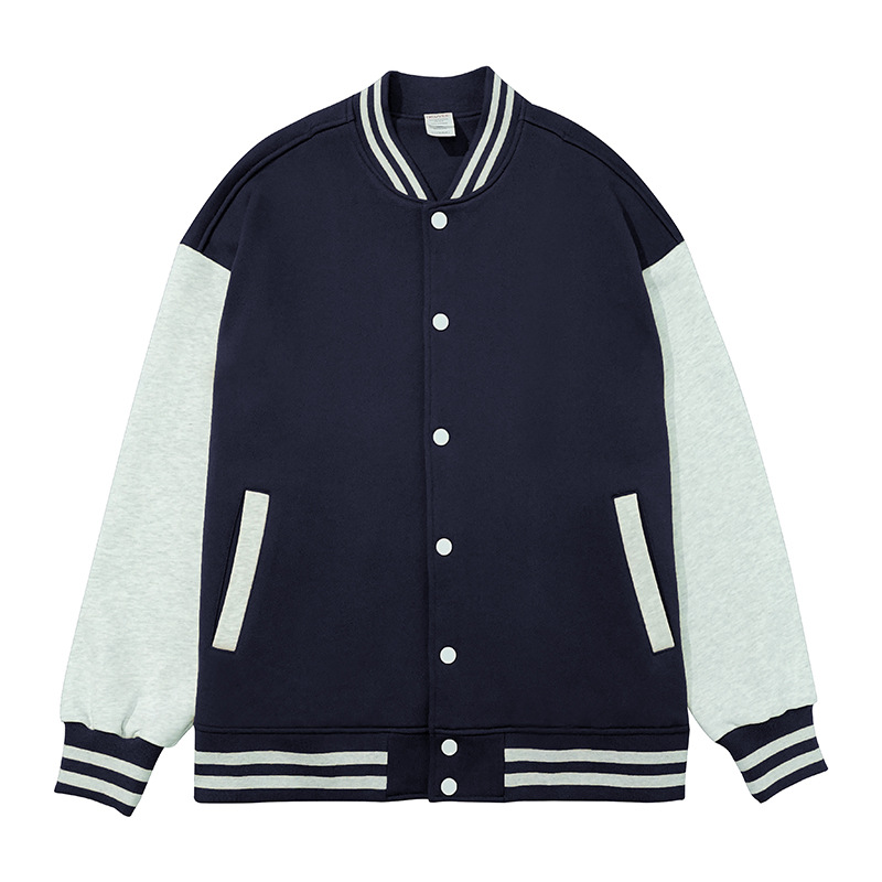 410g pure cotton terry thickened off-shoulder baseball uniform heavyweight large loose American retro baseball cardigan jacket